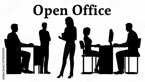 silhouette, office, people, desk, computer, work, business, employee, corporate, workspace, professional, team, meeting, discussion, communication, collaboration, technology, chair, standing, sitting, presentation, document, manager, staff, workplace, indoor, interior, contemporary, modern, design, illustration, graphic, art, drawing, figure, human, person, executive