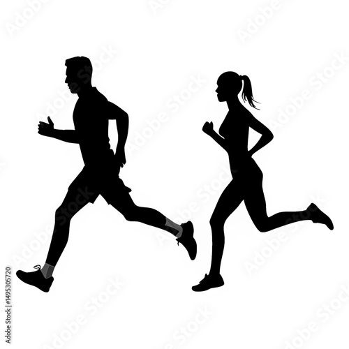 Silhouette illustration of people running in action, perfect for sport and fitness designs