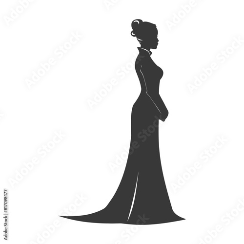 silhouette independent vietnamese women wearing ao dai black color only