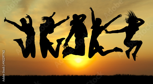 jump, people, happy, joy, grass, sport, many, outside, spring, leap, group, fun, collage, field, freedom, team, youth, active, teenage, air, arm, bent, big, boy, man, woman, friends, friendship, gambol, girl, ground, happiness, human, joyful, lifestyle, play, playful, sky, summer, together, up, upward, young, silhouette, sunset, sun, sunrise