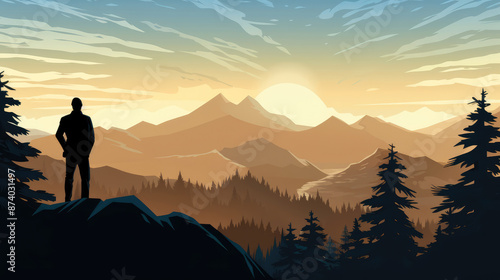 Silhouette of a businessman standing on top of a mountain. illustration art., generative ai