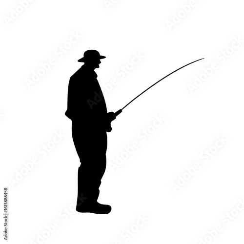 fishing, silhouette, fisherman, sport, person, woman, vector, people, black, rod, illustration, bow, sword, arrow, fish, angler, golf, archer, hobby, rope, pole