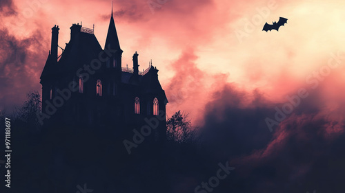 haunted, luxury home, silhouette, halloween, skittish, sunset, eerie, bat, sky, creepy, dark, horror, night, gothic, building, scarey, castle, shadow, mysterious, dusk, fear, cloud, autumn, atmosphere, mist, fog, october, architecture, ghostly, old, vintage, tree, terror, twilight, tradition, festival, roof, ominous
