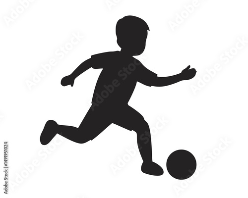 Silhouette of a Kid Playing Soccer, Active Child Silhouette, Soccer Player Illustration, Transparent Background