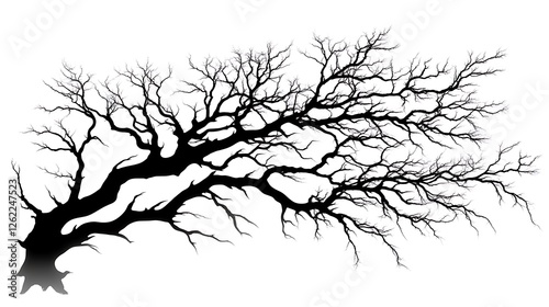 tree, tree branch, branch, silhouette, leafless, bare, winter, autumn, dead, stark, black, white, nature, wood, forest, graphic, illustration, design, artwork, art, image, picture, photo, background, element, texture, pattern, abstract, minimalist, simple, elegant, creepy, skittish, ominous, gnarled, twisted, crooked, old, ancient, weathered, isolated, single, line, drawing, vignetting