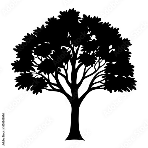tree, silhouette, nature, black, white, foliage, branch, leaf, isolated, trunk, plant, deciduous, graphic, vector, illustration, design, element, organic, growth, forest, timberland, landscape, park, garden, botany, environment, natural, pattern, symbol, artistic