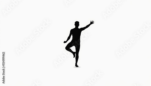 Silhouette of a man dancing freely on a white background for artistic expression and creativity