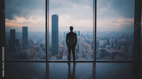 silhouette, man, city, skyline, window, modern, urban, view, perspective, skyscraper, professional, business, calm, minimalism, contemporary, sharpened, serene, symmetry, clean, elegant, stylish, clarity, balanced, horizon, office, bold, concept, sophisticated, roomy, panoramic