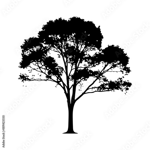 tree, silhouette, black-and-white, deciduous tree, nature, plant, foliage, tree branch, trunk, canopy, outline, minimalist, graphic, organic, botany, timberland, forest, park, garden, season, growth, life, symbol, isolated, design, element, vector, art, beauty
