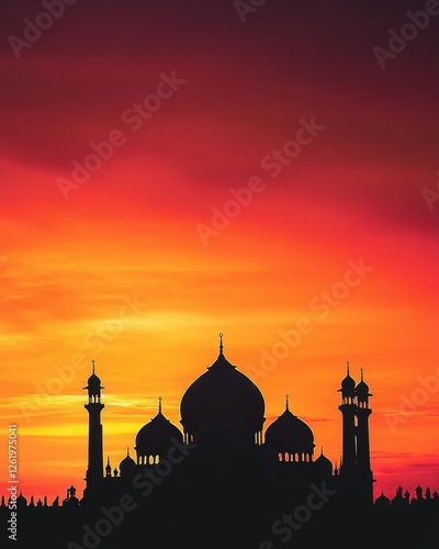 mosque, sunset, silhouette, red, orange, sky, architecture, religion, islam, building, dome, minaret, twilight, evening, golden hour, landscape, travel, faith, spiritual, religious, prayer, worship, culture, history, heritage, destination, scenic, beautiful, dramatic, vibrant, colours, cloud, horizon, night, day, light, shadow, dark, contrast, composition, photo, image, picture, photo, art, design