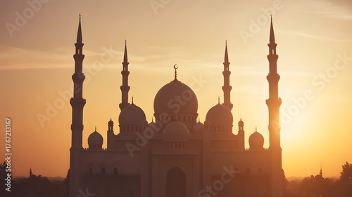 mosque, sunset, silhouette, architecture, building, islam, religion, dome, minaret, sky, sun, travel, tour tourism, landmark, arab, arabic, middle, east, culture, religious, islamic, prayer, worship, tower, structure, exterior, design, ornate, traditional, art, gold, light, evening, dawn, scene, landscape, destination, holy, place, spiritual, faith, belief, history, ancient, heritage, symbol, crescent, moon, arabian
