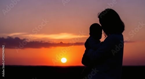mother, baby, children, infant, silhouette, sunset, sky, orange, yellow, sun, light, dark, love, care, family, eltern, motherhood, childhood, holding, arm, warmth, peaceful, serene, landscape, horizon, nature, outdoors, dusk, dawn, evening, morning, scenic, beautiful, calm, quiet, together, connection, bond, protection, tenderness, affection, support, happiness, joy, hope, future, dream, peacefulness, calmness