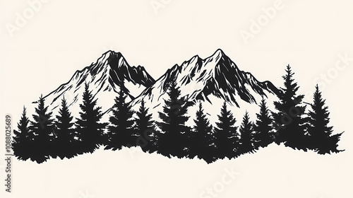 Silhouette of a mountain range with pine trees, nature vector landscape. Majestic Mountain Range. Illustration