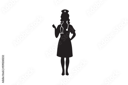 Silhouette of a nurse with a stethoscope and nurse cap
