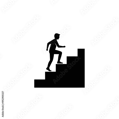 Silhouette of a person climbing stairs, representing progress and success