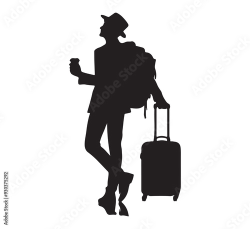 travel, suitcase, bag, woman, people, baggage, holiday maker, traveler, business, person, trip, baggage, businessman, vacation, couple, aerodrome, suit, fashion, journey, tour tourism, traveling, walking, voyage, silhouette, vector