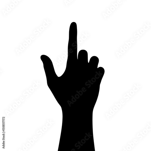 Silhouette of a raised hand pointing upwards against a white background