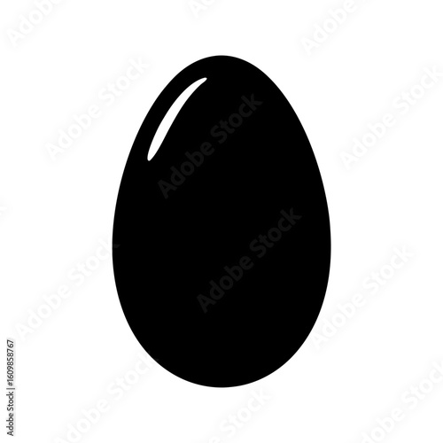 Silhouette of a sleek black egg with subtle reflective highlight