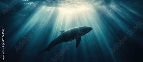 ocean, whale, underwater, water, marin, animal, wildlife, sea, mammal, sunlight, sunbeam, deep, dark, blue, aquatic, nature, creature, life, light, shadow, silhouette, swimming, mystical, serenity, peaceful, tranquil, beauty, mystery, depth, immensity, giant, fin, tail, body, solitary, enigma, underwater photography