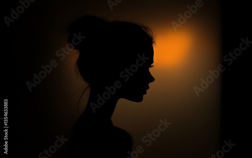 silhouette, woman, profile, dark, light, orange, hair, bun, art, portrait, beauty, female, moody, elegant, pensive, mysterious, shadow, dramatic, artistic, simple, night, fashion, photo, glamour, style, photo, model, artwork, mood