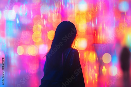 silhouette, woman, neon, light, vibrant, city, night, urban, mysterious, artistic, stylish, modern, futuristic, dynamic, soft, moody, illuminated, aesthetic, contemporary, dramatic, elegant, colourful, composition, shadow, contrast, perspective, fantasy, background, deep, movement, visionary, digital, minimalistic, photo, refined, conceptual, nightscape, bold, expression, cinematic, detailed, dreamy, glowing, atmosphere