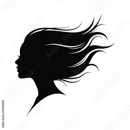 woman, silhouette, flowing, hair, wind, profile, face, head, neck, coiffure, beauty, female, portrait, style, elegant, black, shape, design, art, graphic, symbol, abstract, retro, vintage, simple, outline, drawing, artistic, decorative, modern, creative, minimalist, template, element, clip art, artwork, motion, dynamic, identity, brand
