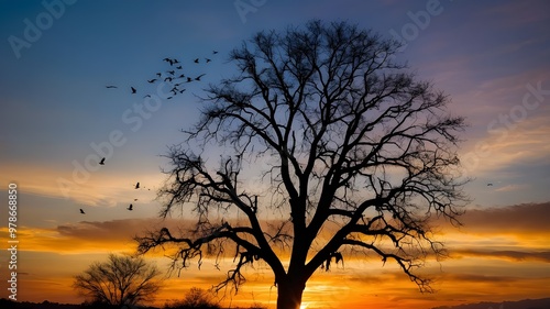 silhouette, bird, flying, over, lone, dead, tree, amazing, sunset, sun, ray, creating, stunning, background, scenic, dramatic, peaceful, nature, vibrant, sky, evening, horizon, golden hour, tranquil, twilight, picturesque, landscape, glowing, silhouette, serenity, natural beauty, dramatic sky, contrast, artistic, aethereal, calm, majestic, shadow, colourful, radiant, dusk, solitude