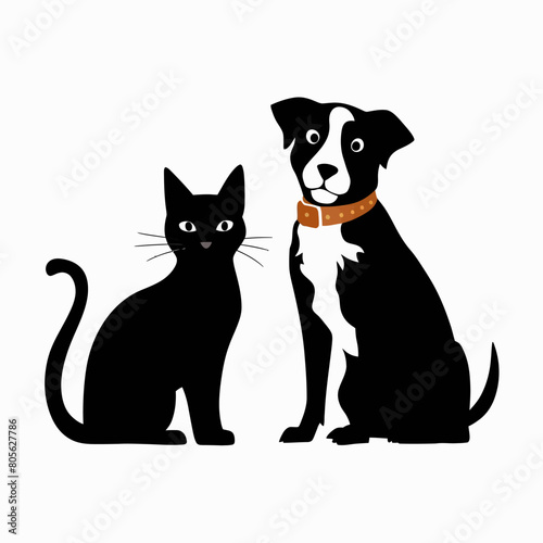 Silhouette of cat and dog on white background