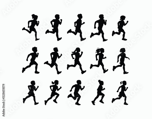 freedom, exploration, group, silhouette, girl, character, vector, exercising, activity, athletic, boy, sport, victory, jumping, fast, offspring, little, recreation, movement, running, illustration, young, searching, race, jogging, school, children, variation, childhood, male, outside, game, playing, friendship, move, evolution
