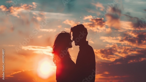 Silhouette of couple at sunset with beautiful sky background
