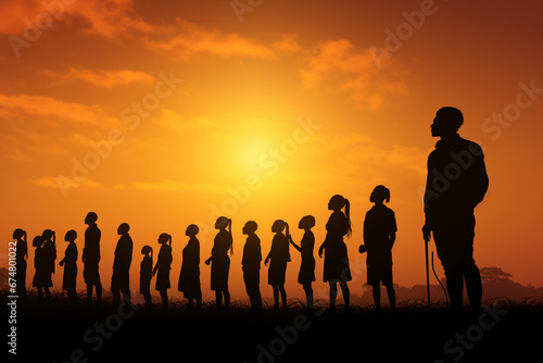silhouette, sunset, three-dimensional, people, golden hour, evening