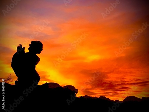 sunset, silhouette, sky, sunrise, people, sun, couple, woman, love, nature, mountain, cloud, orange, beach, evening, photographer, family, dusk, religion, person, black, travel