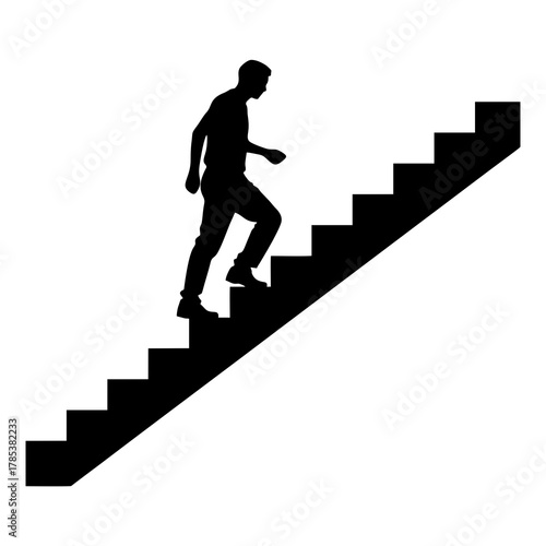 person, silhouette, stair, climbing, progress, achievement, ambition, challenge, graphic, step, illustration, journey, vector, motivation, success, career, growth, man, ascent, black, determination, upward, shape, woman, symbol, walking, effort, goal, figure, male, movement, up, development, female, isolated, white, aspiration, executive, future, leadership, corporate, dynamic, finance, ladder, life, professional, shadow, abstract, business