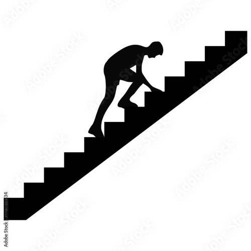 person, silhouette, stair, climbing, progress, achievement, ambition, challenge, graphic, step, illustration, journey, vector, motivation, success, career, growth, man, ascent, black, determination, upward, shape, woman, symbol, walking, effort, goal, figure, male, movement, up, development, female, isolated, white, aspiration, executive, future, leadership, corporate, dynamic, finance, ladder, life, professional, shadow, abstract, business