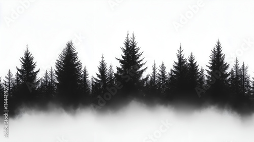 silhouette of pine forest on white, Redwood tree-line silhouette