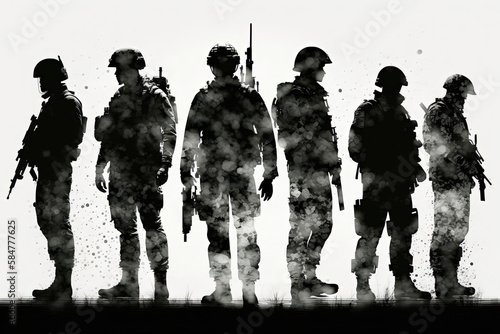 Silhouette of soldiers. AI generated