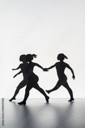 dance, silhouette, female, movement, black-and-white, minimalist, abstract, dynamic, performance, art, shadow, body, motion, contemporary, elegant, graceful, athletic, rythm, expression, collaboration, connection, energy, balance, oneness