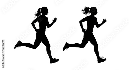 Silhouette of two women running, representing fitness and healthy lifestyle