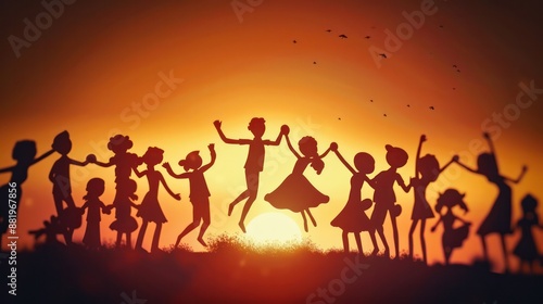 Silhouette of wedding celebration in the sunset