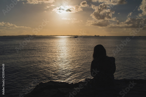 sunset, sea, ocean, beach, sun, water, sky, silhouette, woman, nature, sunrise, cloud, landscape, evening, dusk, coast, orange, summer, lake, horizon, watching, people
