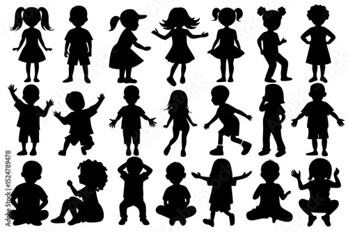 Silhouette outline of children boys and girls isolated on transparent background
