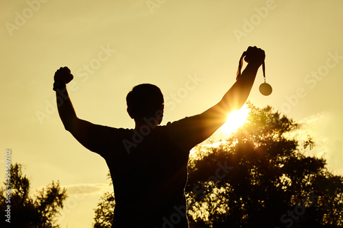 success, silhouette, winner, gold, motivation, victory, medal, raised, man, sport, people, sunset, business, holding, sky, trophy, achievement, celebration, cup, competition, reward, award, champion, succeed, honour, ceremony, leadership, light, team, athlete, positive, holiday, prize, abstract, challenge, best, encouragement, championship, worship, gold, summer, target, first, goal, hand, male, place