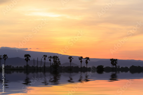Silhouette sugar palm tree at waterfront