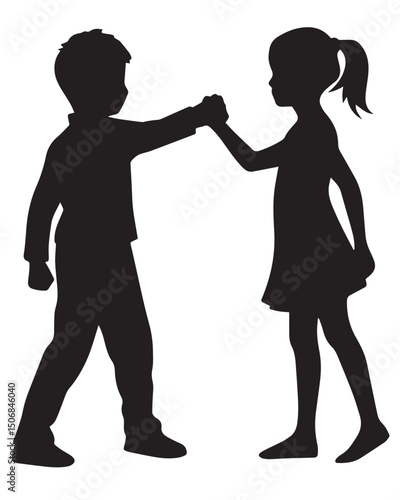 children, silhouette, vector, boy, girl, friends, oneness, teamwork, gesture, bonding, playful, youth, casual attire, together, standing, shadow, outline, duet, happy, innocence, childhood, partnership, interaction, sibling, greeting, trust, respect, children, school, human relationships, harmony, cooperation, cute, black, flat, pose, character, communication, connection, symbol, friendly, cartoon, silhouette