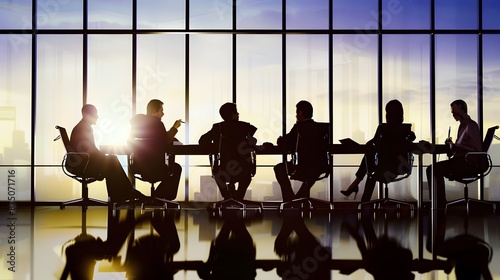 business, meeting, office, professional, teamwork, conference, silhouette, collaboration, corporate, sunset, discussion, group, work, boardroom, modern, strategy, planning, team, people, employee, workplace, management, executive, businessperson, indoor, window, sunlight, glasses, table, chair, city, skyline, corporation, colleague, success, idea, innovation, urban, inspiration