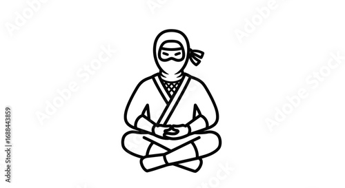 ninja, warrior, meditation, zen, martial art, silhouette, figure, drawing, line art, black-and-white, cartoon, character, anime, illustration, graphic, design, symbol, asian, japan, culture, traditional, clothing, costume, pose, seated, calm, focused, concentration, spiritual, peaceful, isolated, outline, minimalist, simple, vector, modern, contemporary, art, design element, icon, symbolism, fantasy, action, history, legend, mythology, iconography, representation