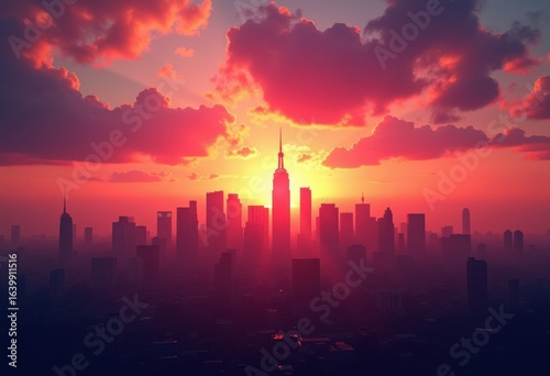 silhouetted skyline vibrant dusk horizon stunning visual spectacle colorful sky, clouds, twilight, evening, view, cityscape, reflection, panorama