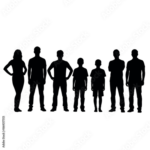 silhouette, group, family, people, adult, children, man, woman, standing, together, pose, black, white, background, simple, graphic, illustration, vector, image, design, element, human, figure, portrait, person, individual, team, oneness, community, togetherness, bond, human relationships, connection, social, gathering, assembly, crowd, collection, set, multiple, various, different, similar, uniform, style, shape, form, outline, profile