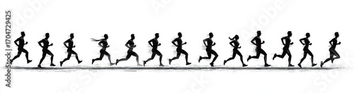 runner, silhouette, running, motion, athletic, fitness, exercise, people, movement, speed, sport, marathon, energy, health, training, track, dynamic, endurance, jogging, pace, team, competition, activity, healthy lifestyle, figure, body, posture, cardio, stamina, strength, physical exercise, freedom, determination, group, diversity, muscle, action, motion blur, sprint, active, running shoe, gait, race