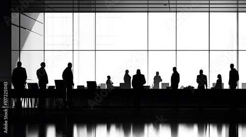 Silhouettes of professionals in a modern office setting, highlighting collaboration and decision-making.